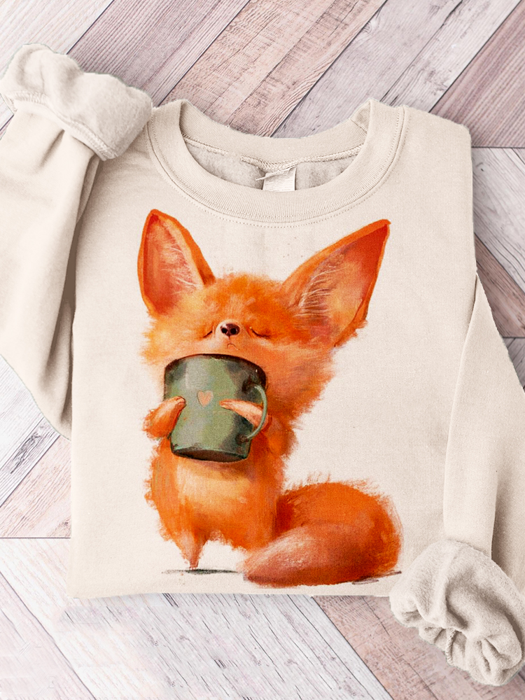 Cute Fox Pattern Print Crew Neck Comfy Sweatshirt