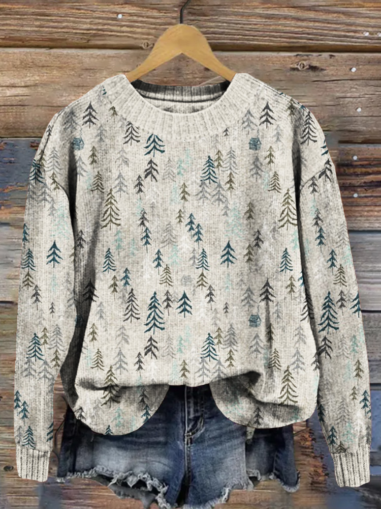 Christmas Trees Graphic Crew Neck Cozy Sweater