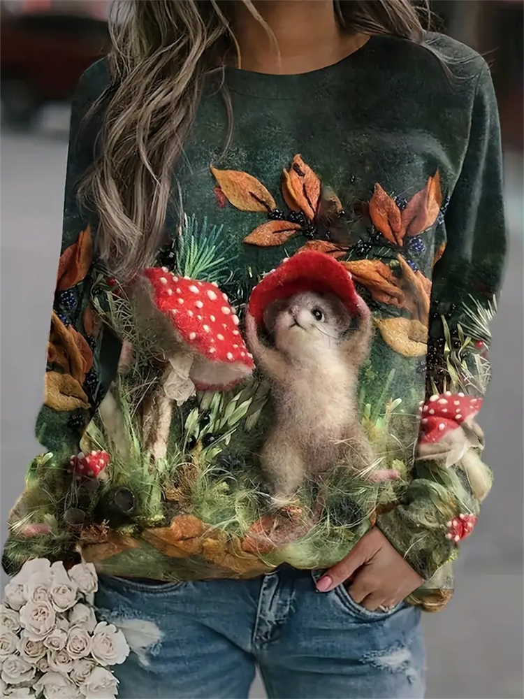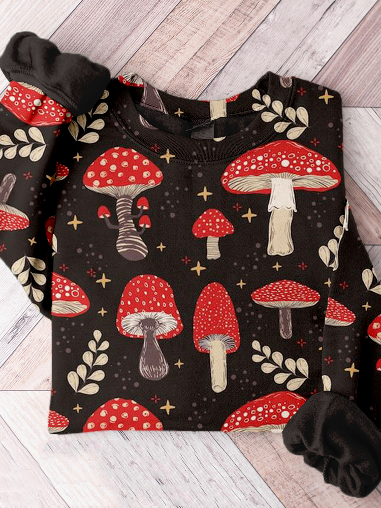 Cute Mushrooms Pattern Crew Neck Comfy Sweatshirt