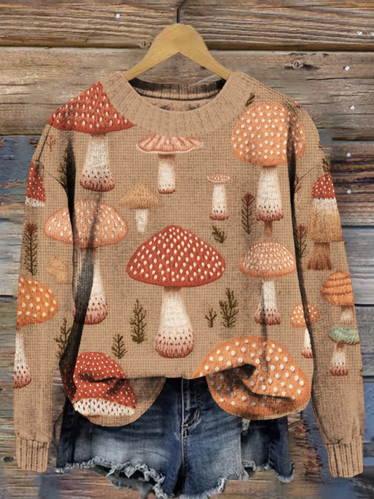 Cute Mushroom Embroidery Art Cozy Knit Sweater