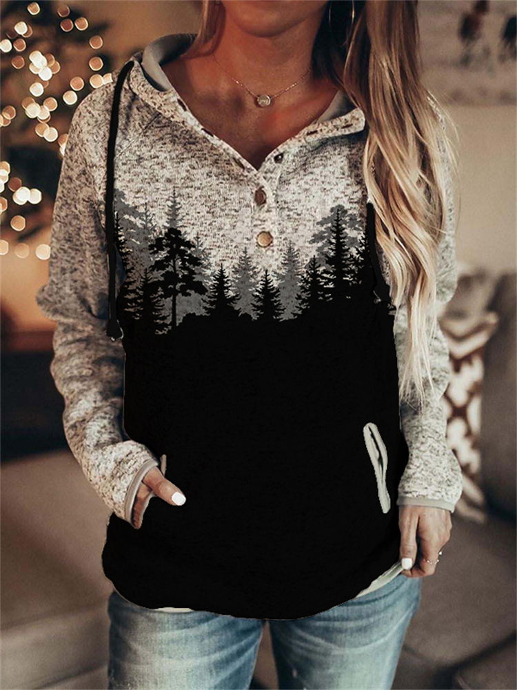 Dark Forest Contrast Button Up Hoodie