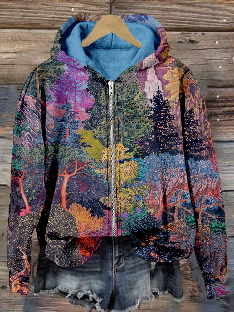 Colorful Forest Graphic Zip Up Comfy Hoodie