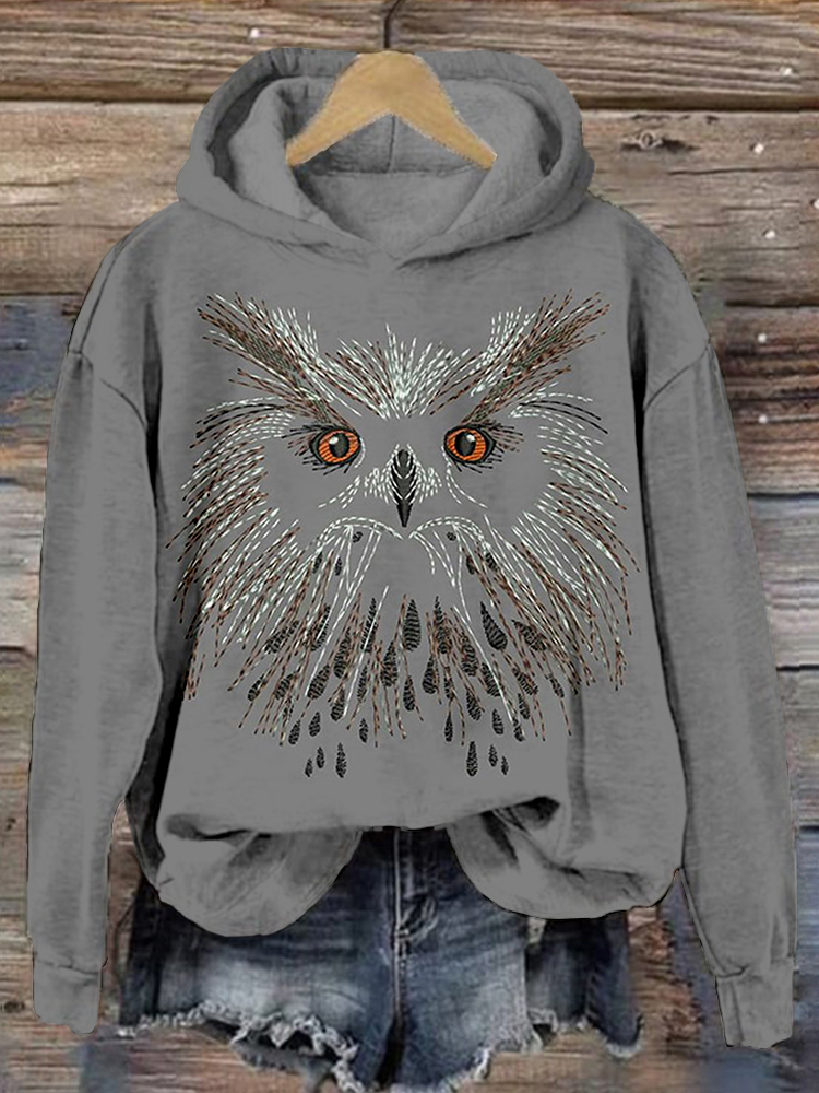 Cute Owl Face Embroidery Art Comfy Hoodie