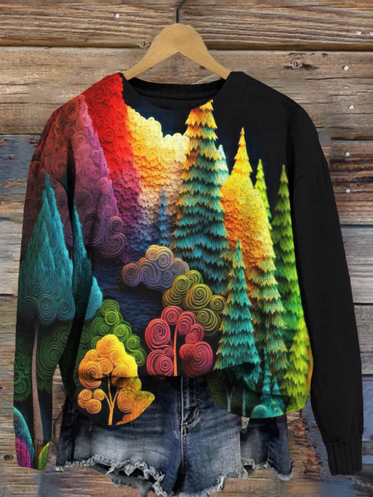 Colorful Forest Trees Art Crew Neck Cozy Sweater