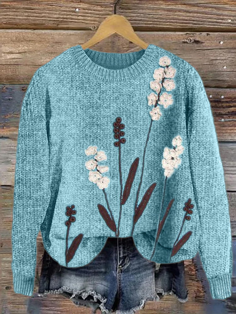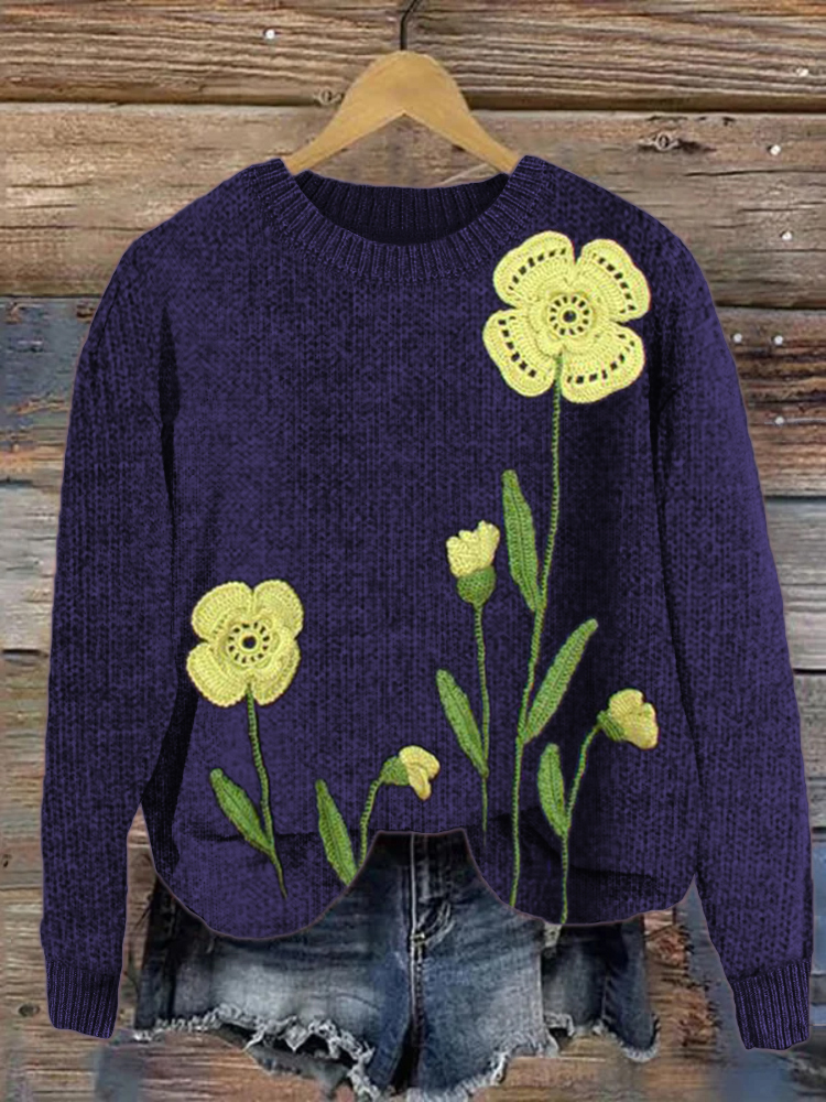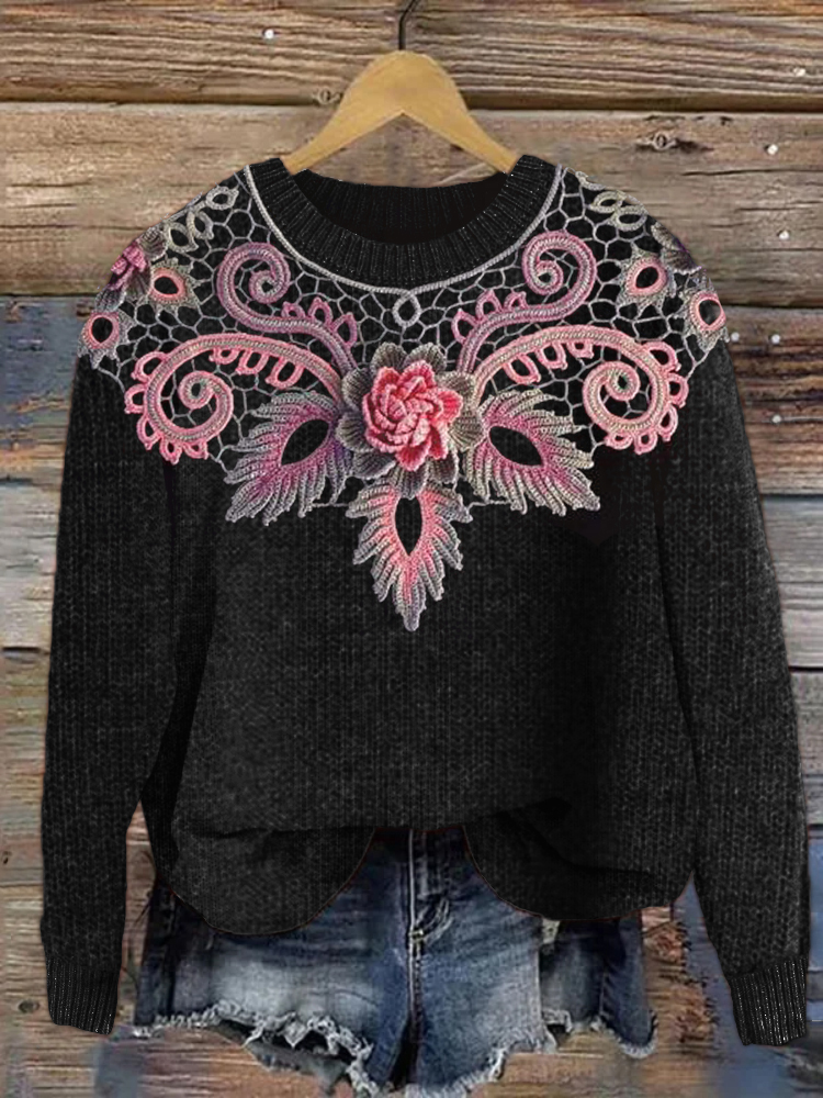 Classy Floral Crochet Art Cozy Knit Sweater