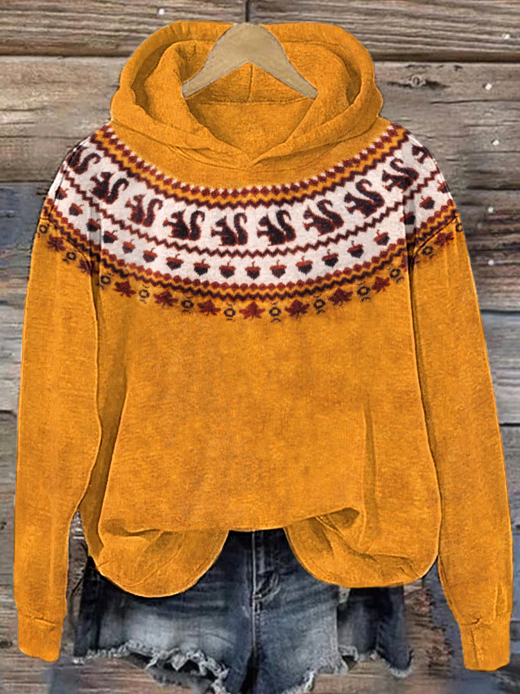 Cute Squirrel Print Casual Cozy Hoodie