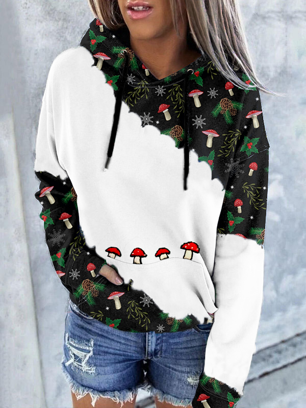 Cute Mushrooms Embroidery Art Contrast Comfy Hoodie