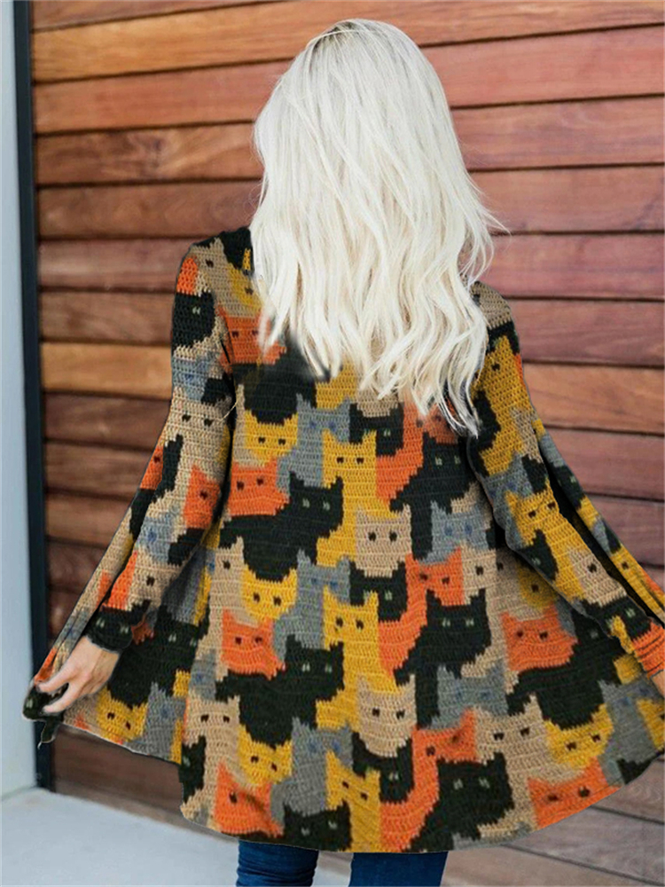 Colorful Cats Knit Art Cozy Cardigan