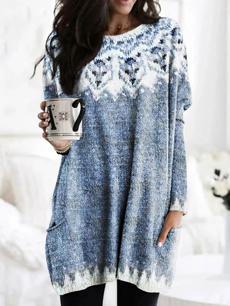 Dog Print Crew Neck Long Sleeve Tunic