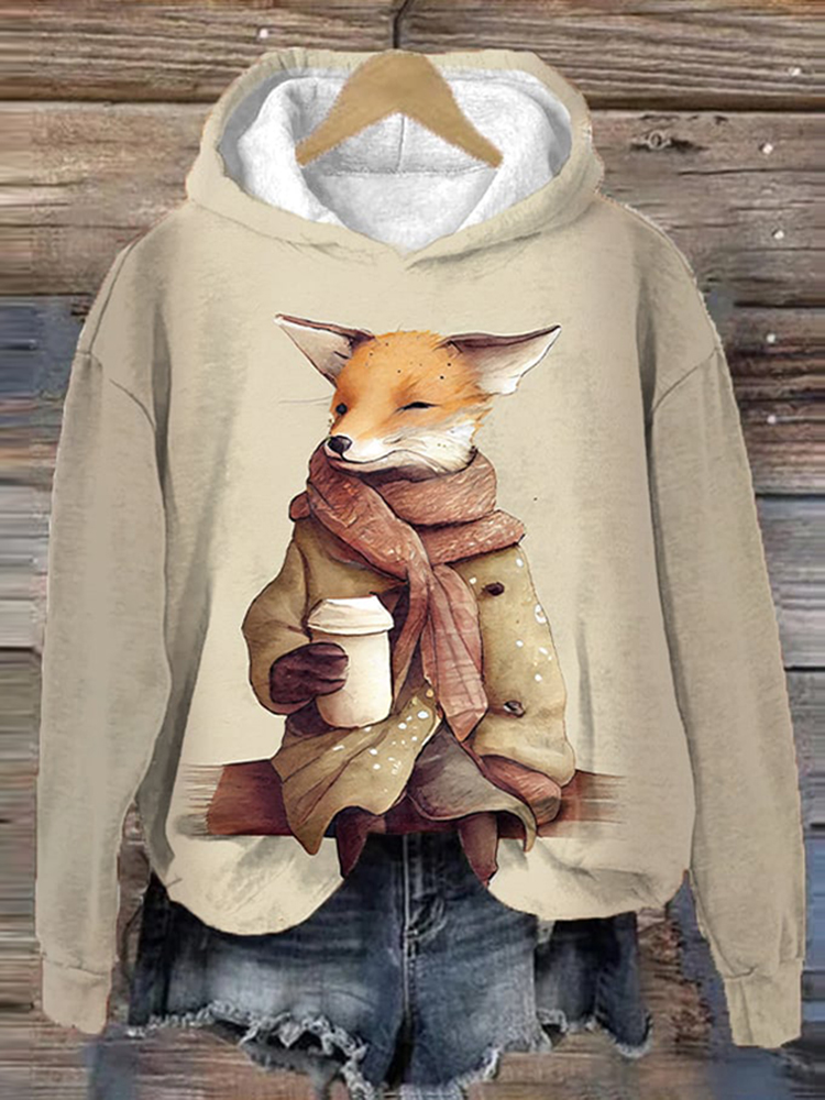 Cute Wonderland Clothing Fox Print Casual Hoodie
