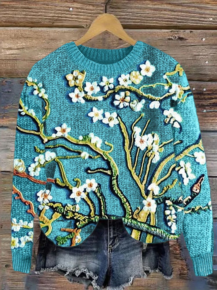 Almond Blossom Crochet Art Cozy Knit Sweater