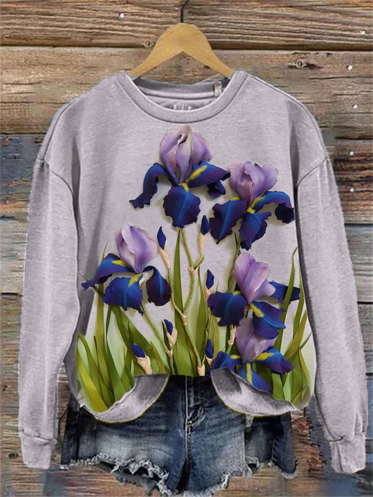 Classy Irises Textile Art Comfy Sweatshirt
