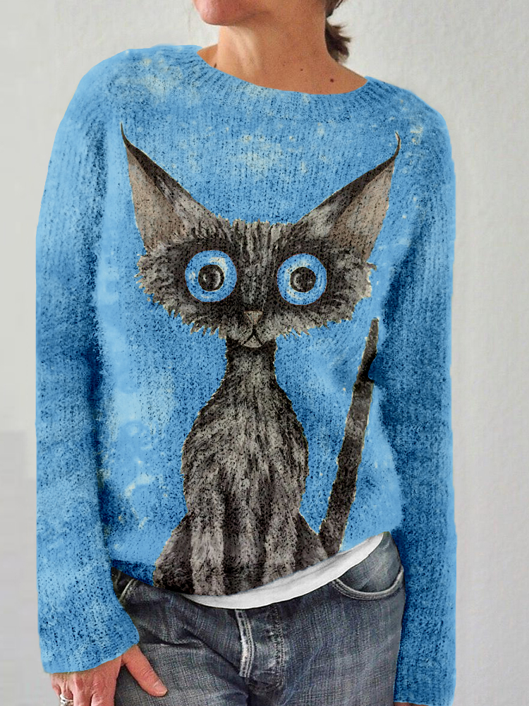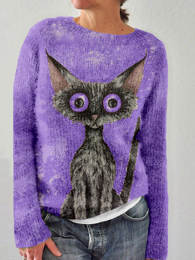 Lovely Black Cat Graphic Vintage Cozy Sweater