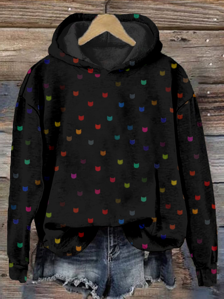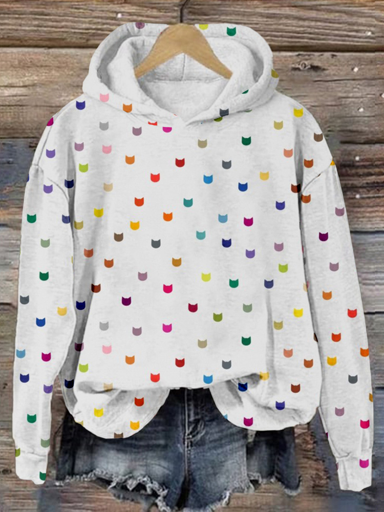 Cute Cats Graphic Crew Neck Cozy Hoodie