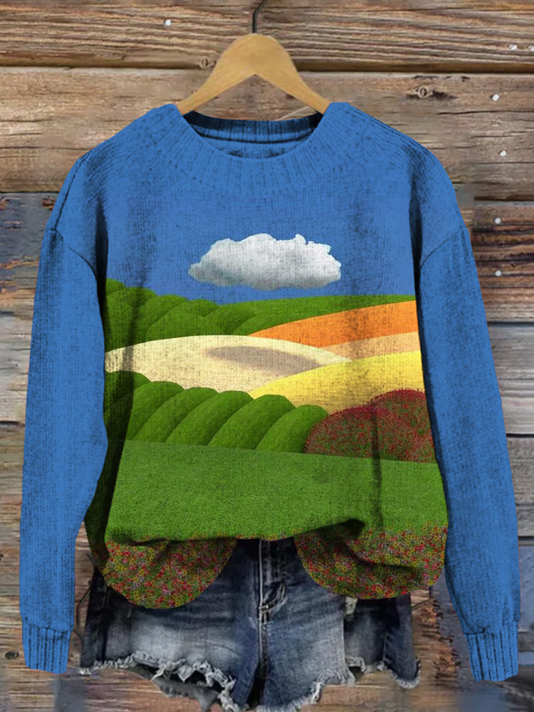 Field of Flowers Embroidery Art Cozy Knit Sweater