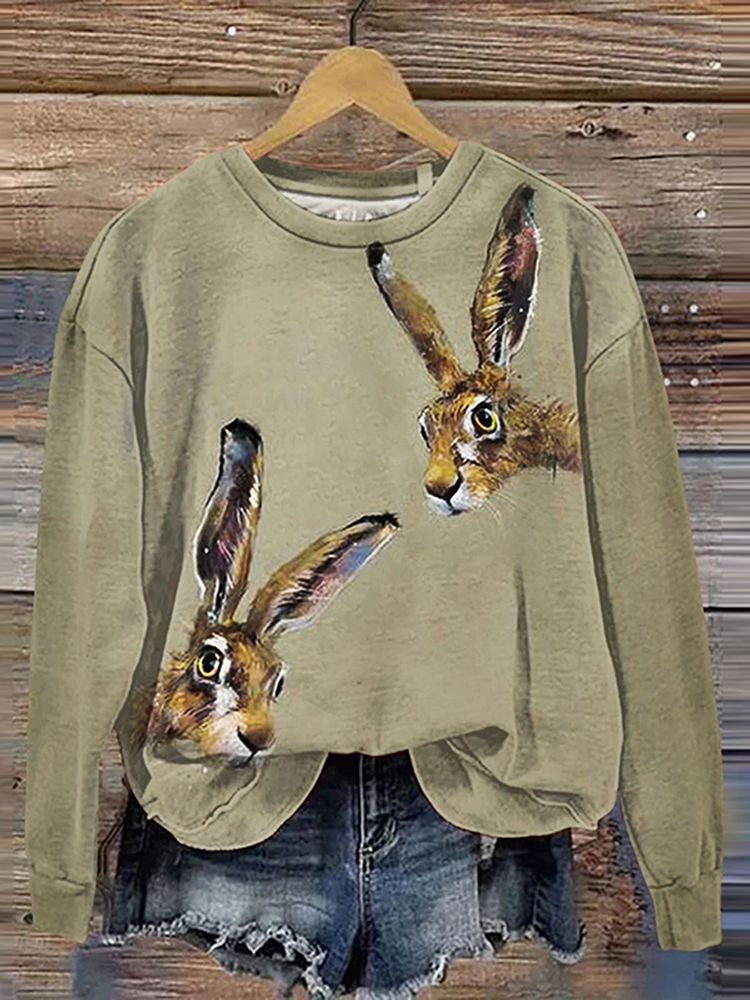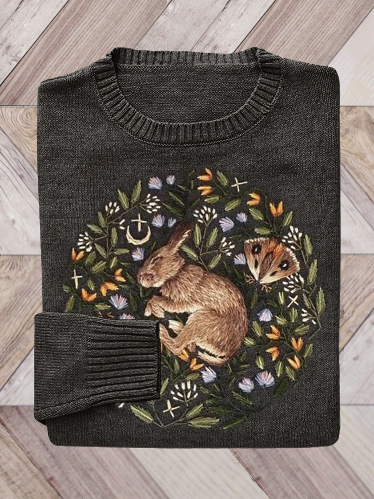 Forest Sleeping Hare Embroidery Art Knit Sweater