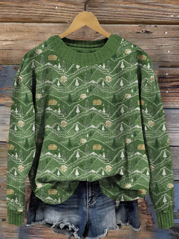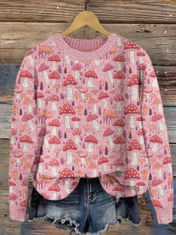 Forest Mushroom Cottage Pattern Cozy Knit Sweater