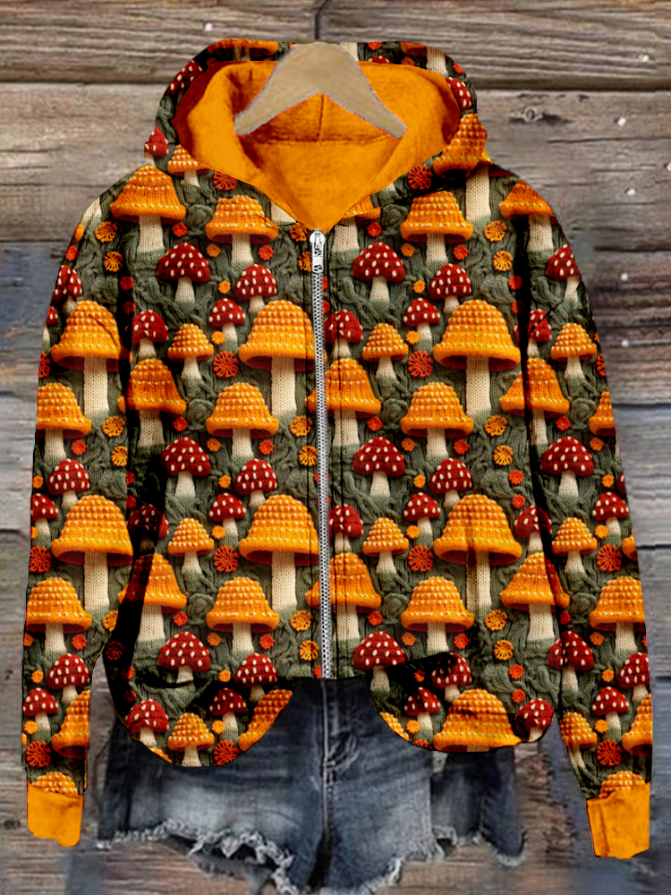 Floral Mushroom Embroidery Art Cozy Knit Hoodie