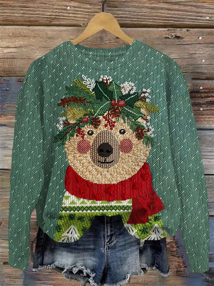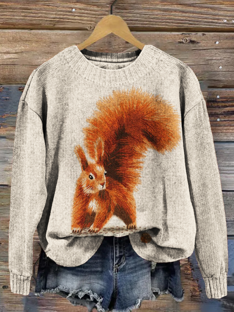 Cute Squirrel Embroidery Art Vintage Cozy Sweater