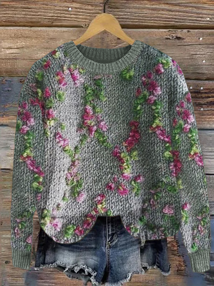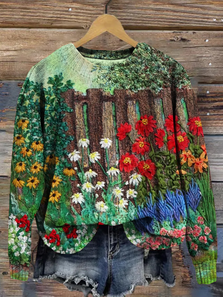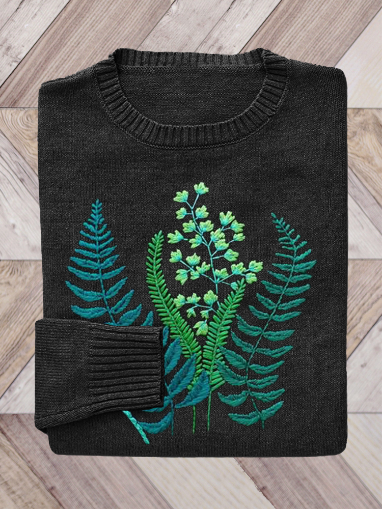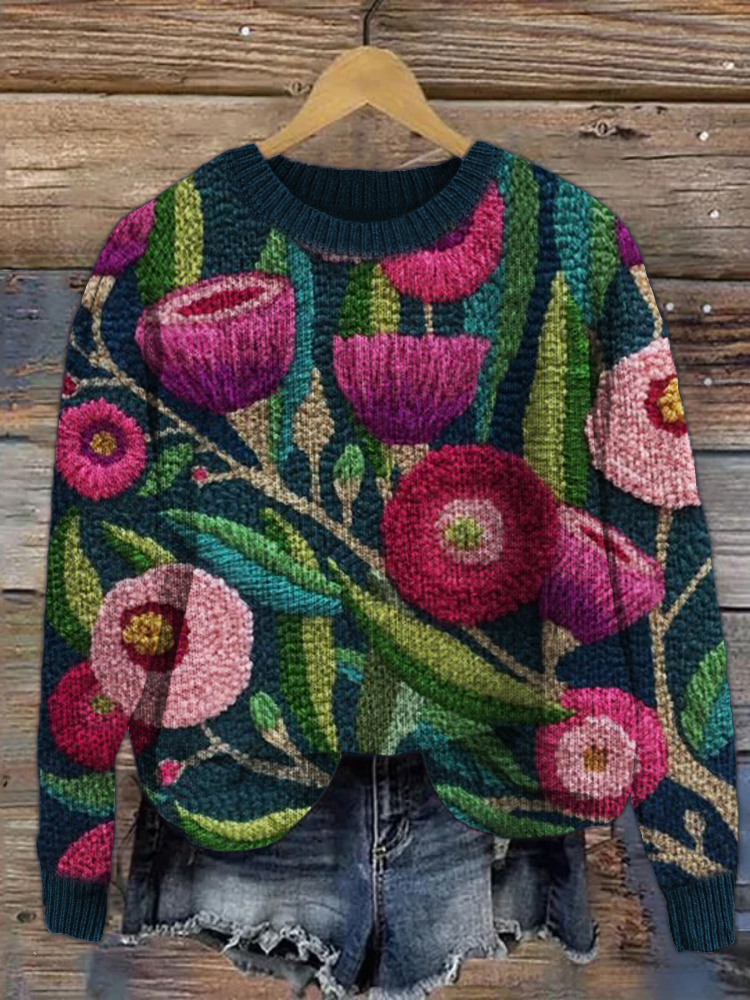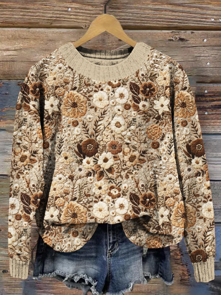 Flower Garden Embroidery Art Comfy Knit Sweater