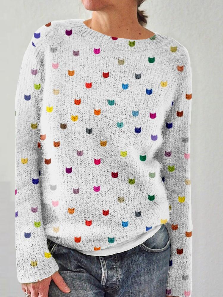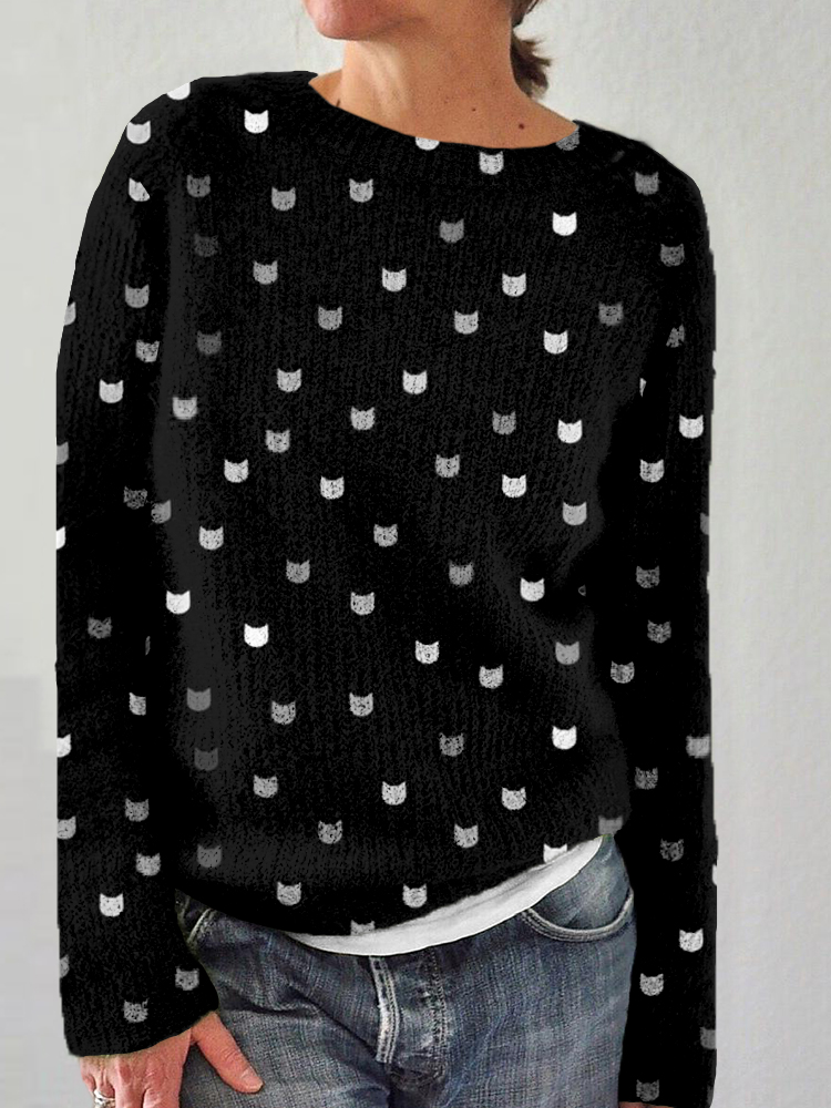 Cute Little Kitty Pattern Crew Neck Cozy Sweater