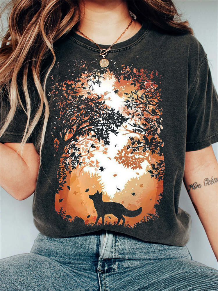 Fox in Forest Silhouette Vintage Washed T Shirt