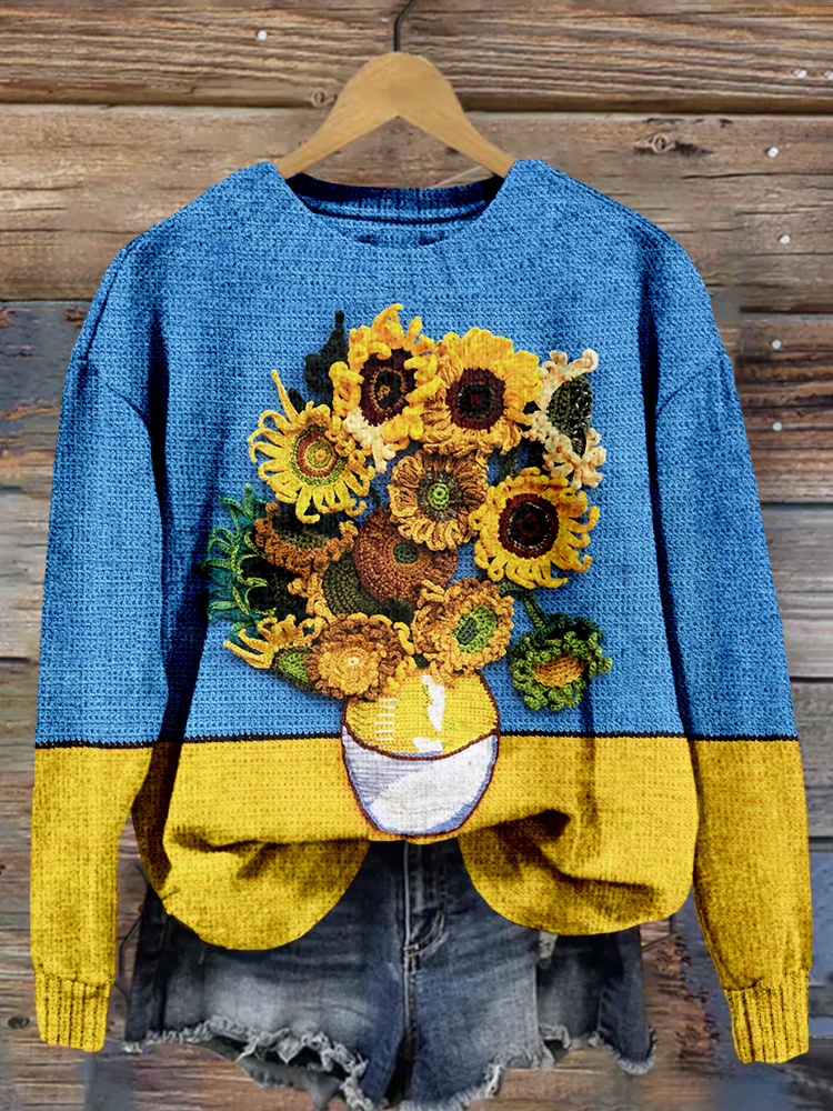 Classy Sunflowers Knit Art Crew Neck Comfy Sweater
