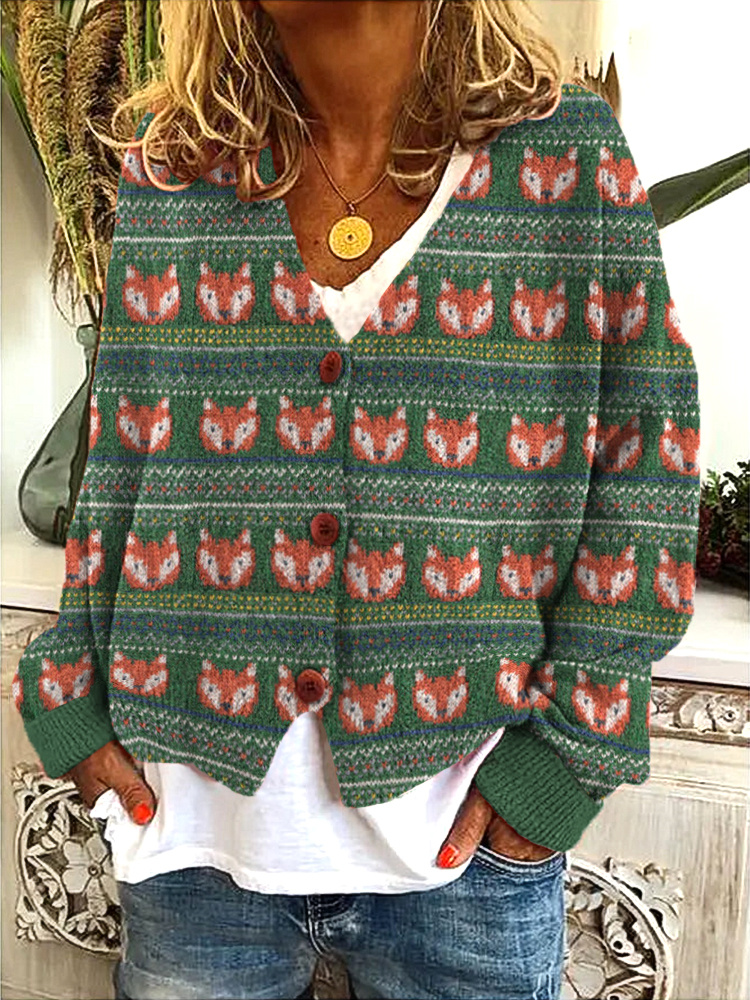 Cute Fox Casual Vintage Cozy Knit Cardigan