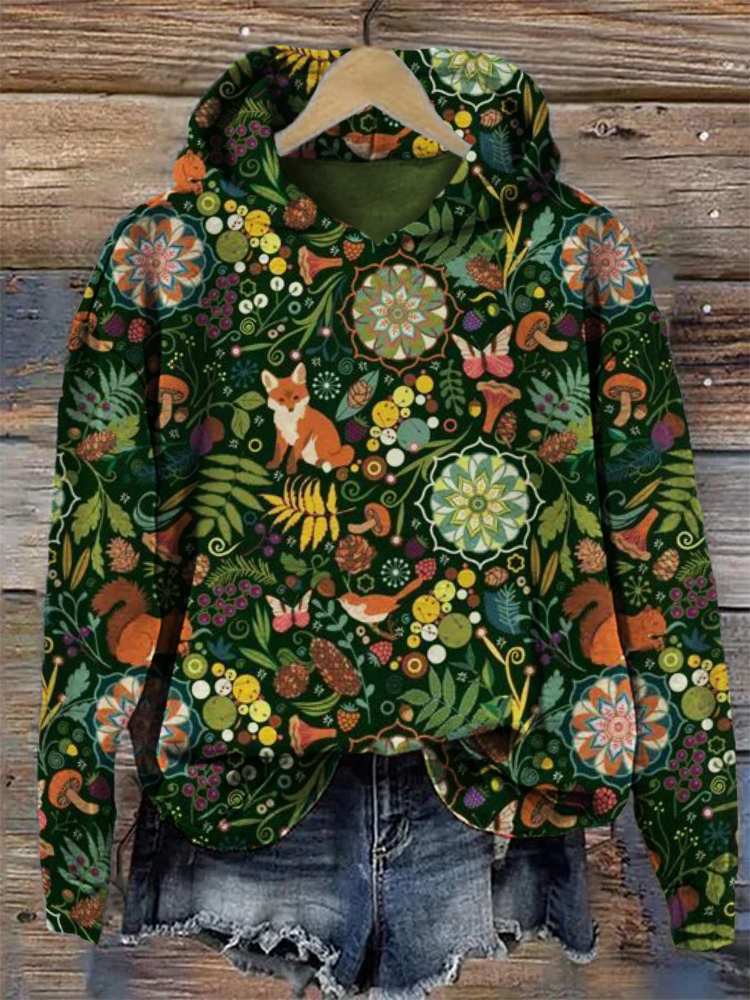 Fox & Falling Leaves Embroidery Art Cozy Knit Hoodie