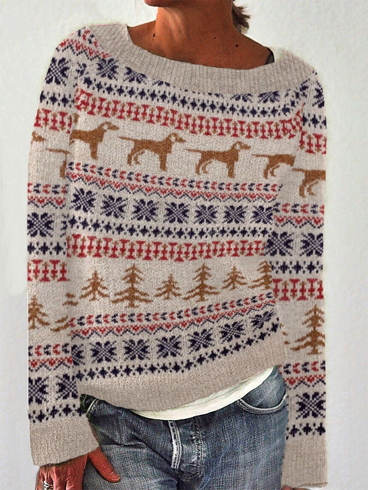 Animal Christmas Elk Print Contrast Crew Neck Sweater