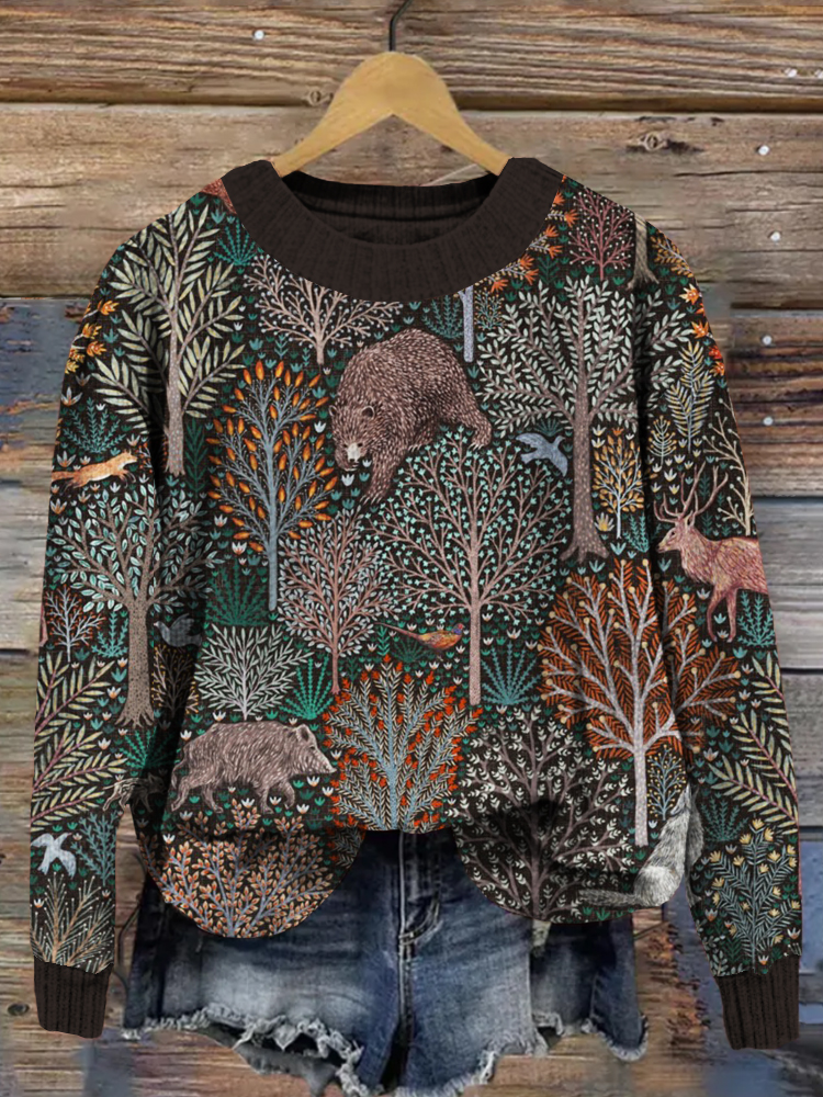 • Forest Animals Graphic Crew Neck Cozy Sweater