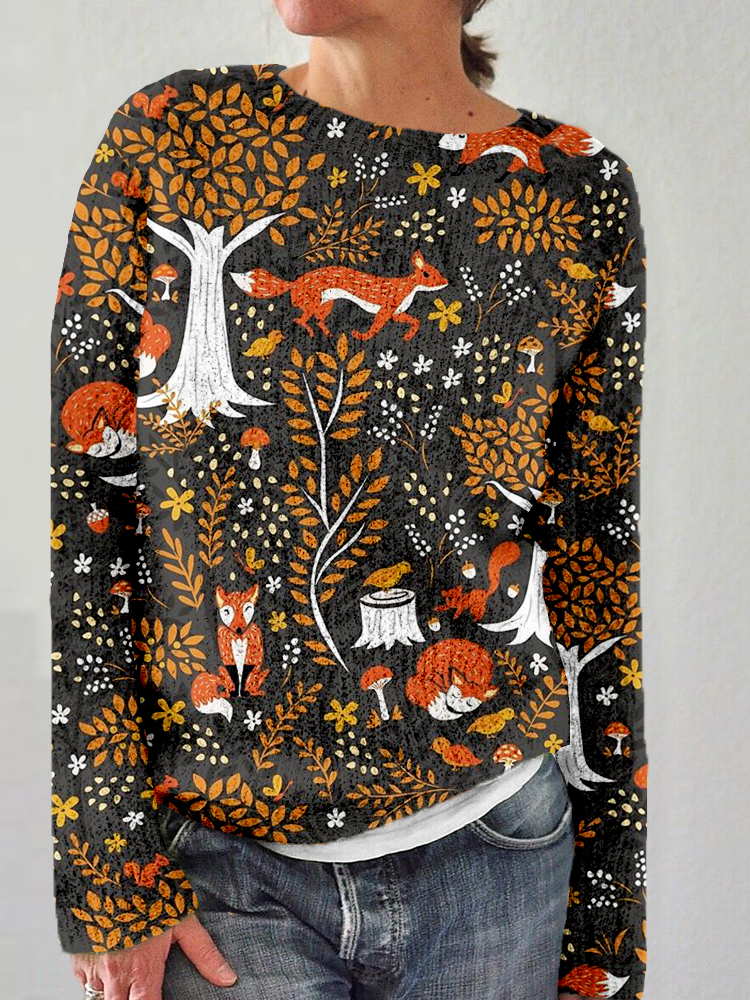 • Foxes Running in a Forest Pattern Cozy Sweater