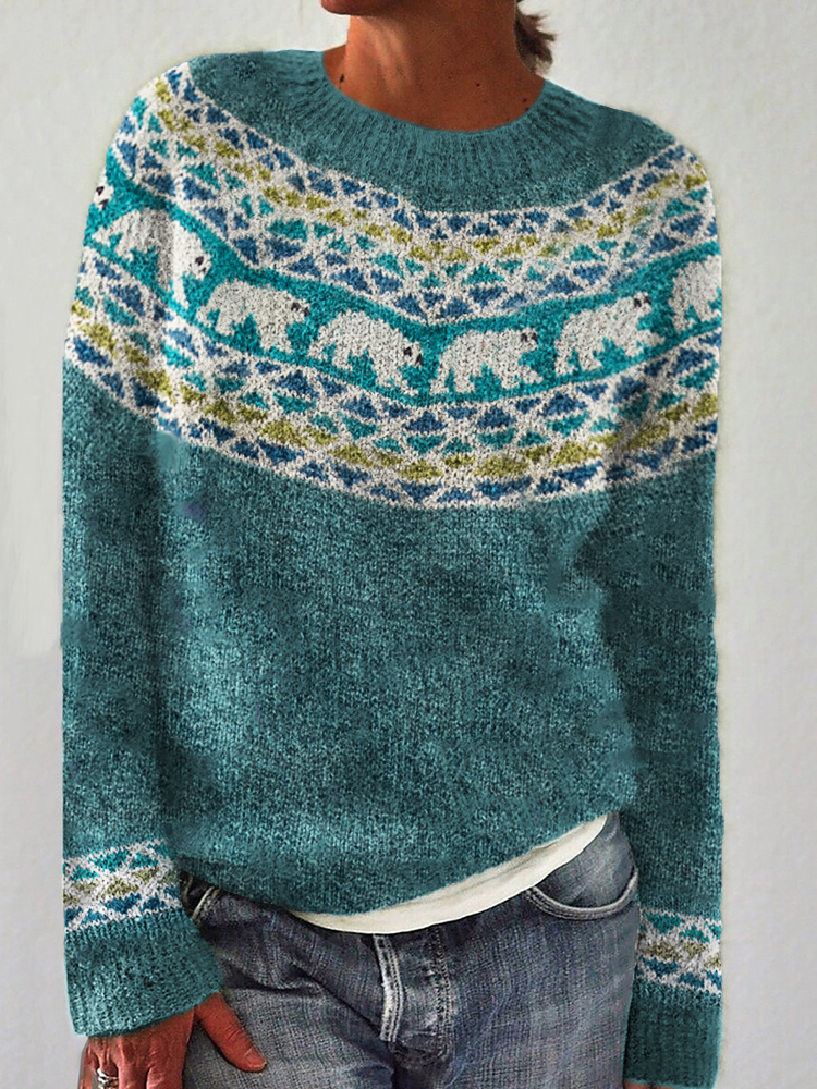 Polar Bear Inspired Knit Cozy Yoke Sweater